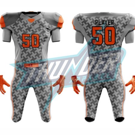 AFU-1022 Grey Sublimated design with orange details football jersey and pants