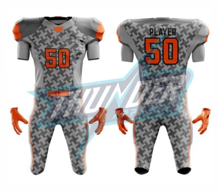 AFU-1022 Grey Sublimated design with orange details football jersey and pants