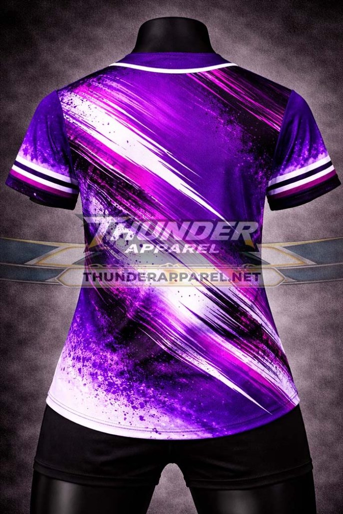 Elevate your team’s performance and style with our premium ladies custom two-button softball and baseball jersey, designed specifically for women athletes. Featuring a bold purple sublimation design with dynamic streak and grunge effects, this jersey delivers a modern, energetic look on the field.