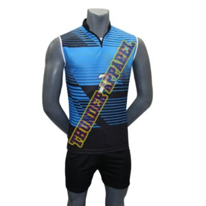 NVB-7016 Sublimated Blue volleyball jersey and blue shorts