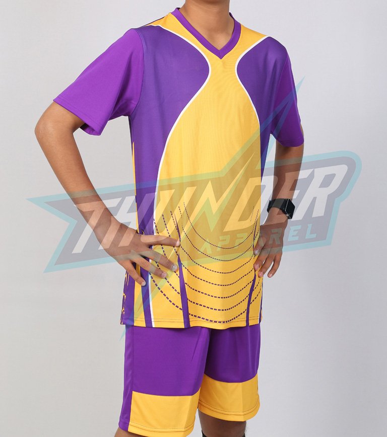 SCU-4044 Yellow Purple football soccer jersey and shorts