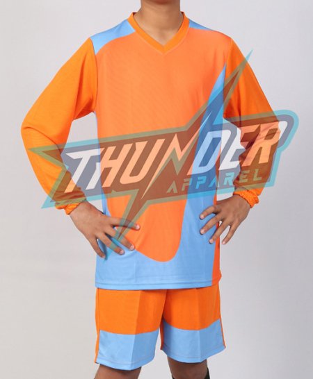 SCU-4046 Orange Blue full sleeve football soccer jersey and shorts