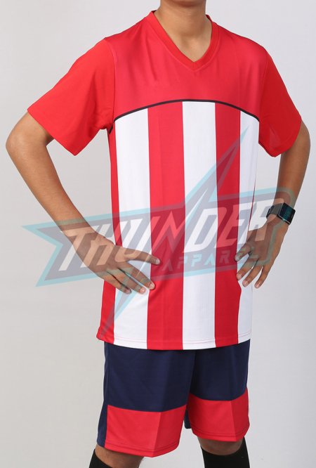 SCU-4047 Sublimated Red white soccer jersey with black shorts