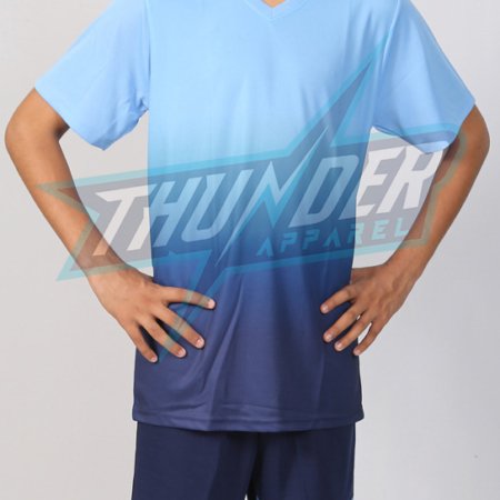 NVB-7016 Sublimated Blue volleyball jersey and blue shorts