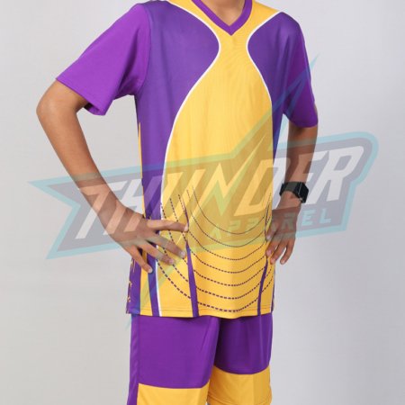 SCU-4044 Yellow Purple football soccer jersey and shorts